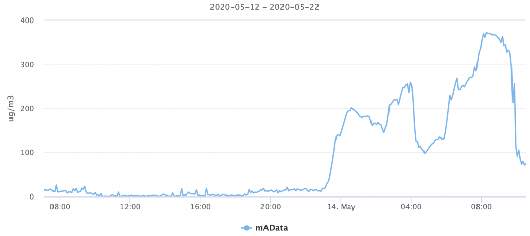 A great photo captured by one of our consultants showing the effect of prescribed burning and a temperature inversion. Also check out the data captured by one of our Real Time Dust Monitors located in the East Perth area.